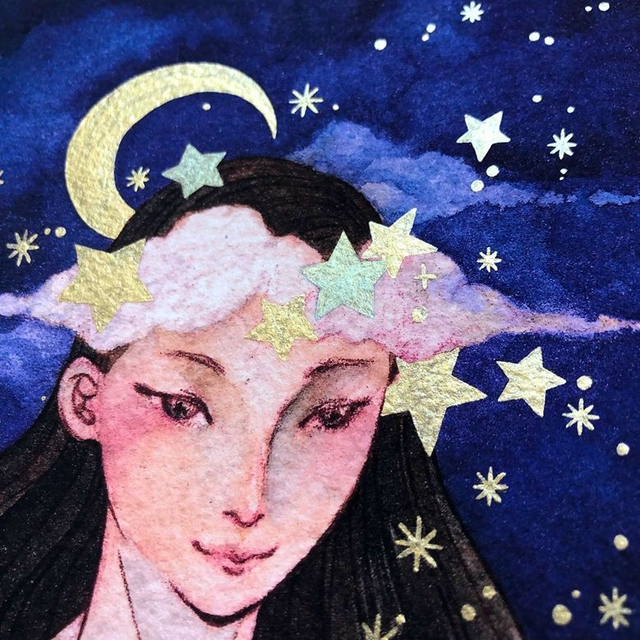 A5 (15 x 21 cm // 5.8 x 8.3 in) art print on 300 gsm watercolour paper, hand-embellished with gold pigment, titled and signed on the back