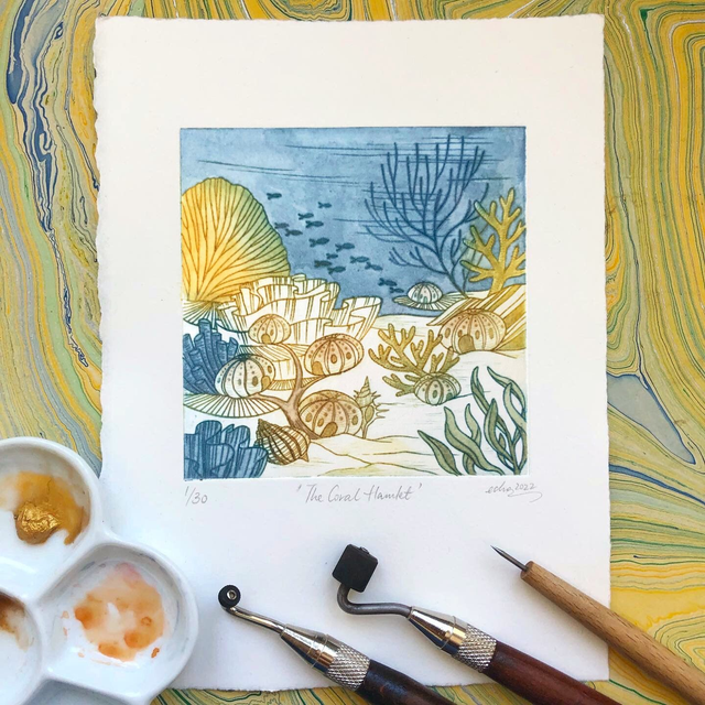 Fabriano Rosaspina paper, Akua intaglio ink, Turner artist watercolours (all materials archival)