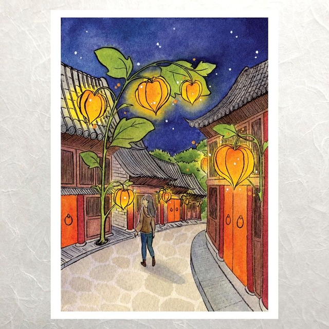 Tirage d'art A5 (15 x 21 cm // 5.8 x 8.3 in) sur papier aquarelle 300 g/m², dorure à la main, titré et signé au dos