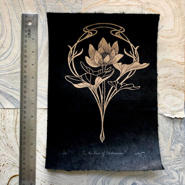 Nepalese Lokta paper, Ink in Tubes letterpress ink, paper and inks used are of archival quality.