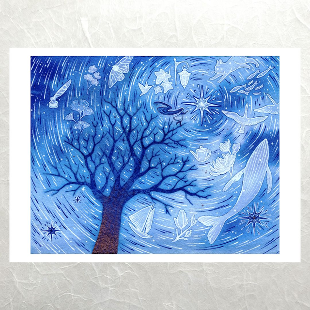 Art print on on 300 gsm pearlescent paper, titled and signed on the back