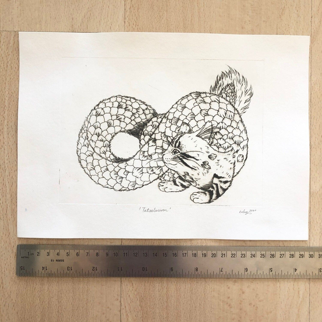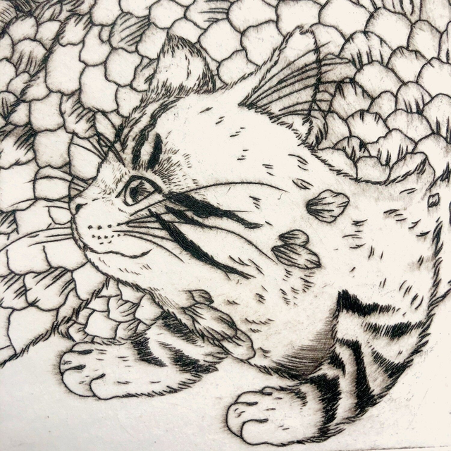 Gravure à la pointe sèche, papier Fabriano Unica, encre Cranfield Safe Wash. Papier et encres de qualité archivale