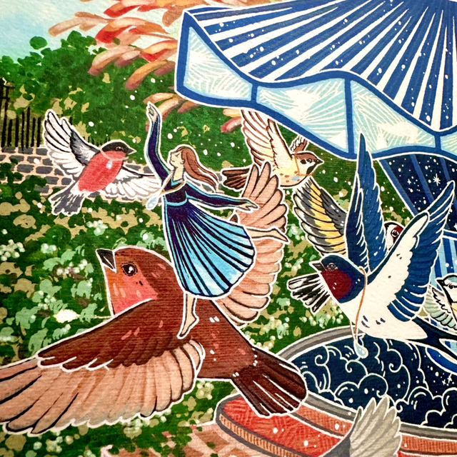 Every once in a while, the Caretaker will come to dance the birds away 🕊